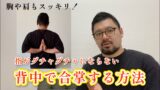 ①両手を首の後ろにまわし、背骨脇に指を立てる